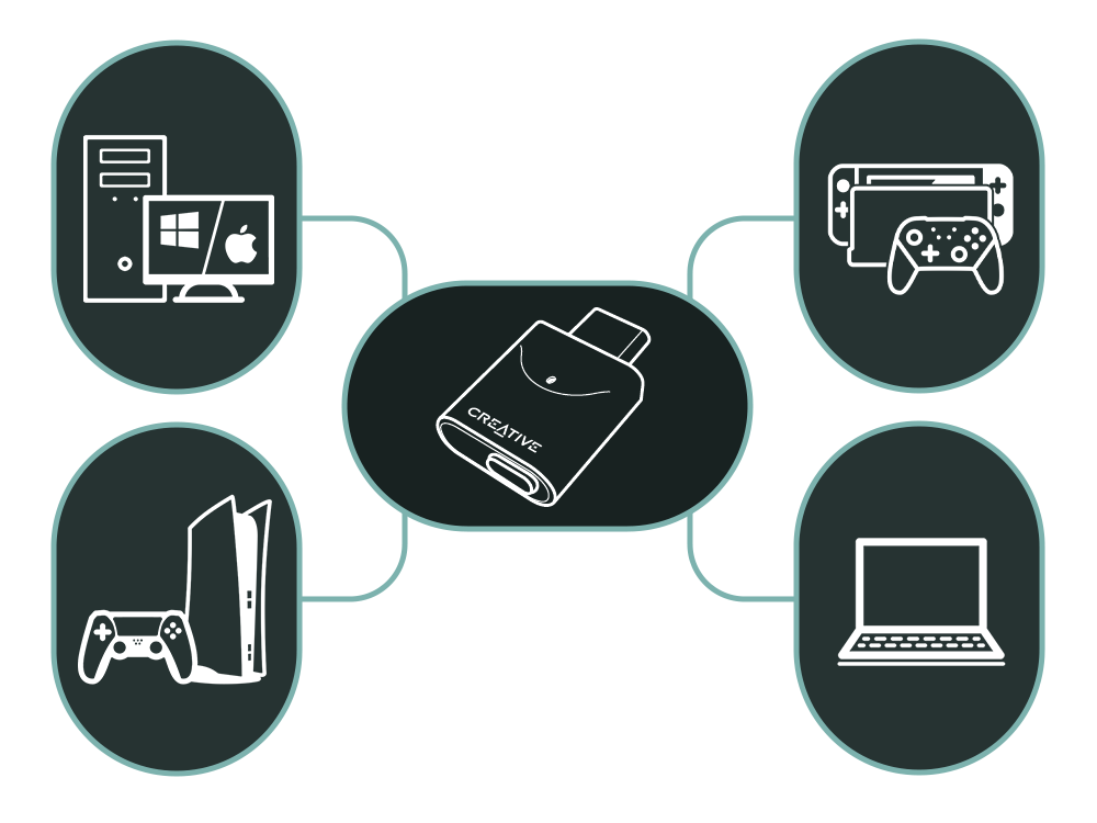 Creative BT-W6即插即用,操作简单。它通过高通骁龙音效技术的增强,可实现即时的蓝牙音频流升级,提升音频和视频同步等功能的优秀解决方案。此外,它还增强了与最新 PC、Mac 和游戏机的兼容性,是满足您所有音频需求的理想选择。