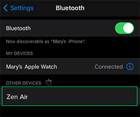 在您的移动设备上打开蓝牙。 在蓝牙设置界面,搜索“Zen Air”,选择配对。
