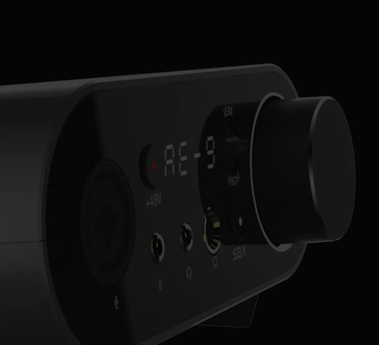 Sound Blaster AE-9的众多强大功能,如:令人称赞的Xamp,都包含在桌面上的ACM音频控制模块里。ACM音频控制模块可支持动圈麦或需幻象电源供电的电容麦,非常适合内容创作者及流媒体传播。