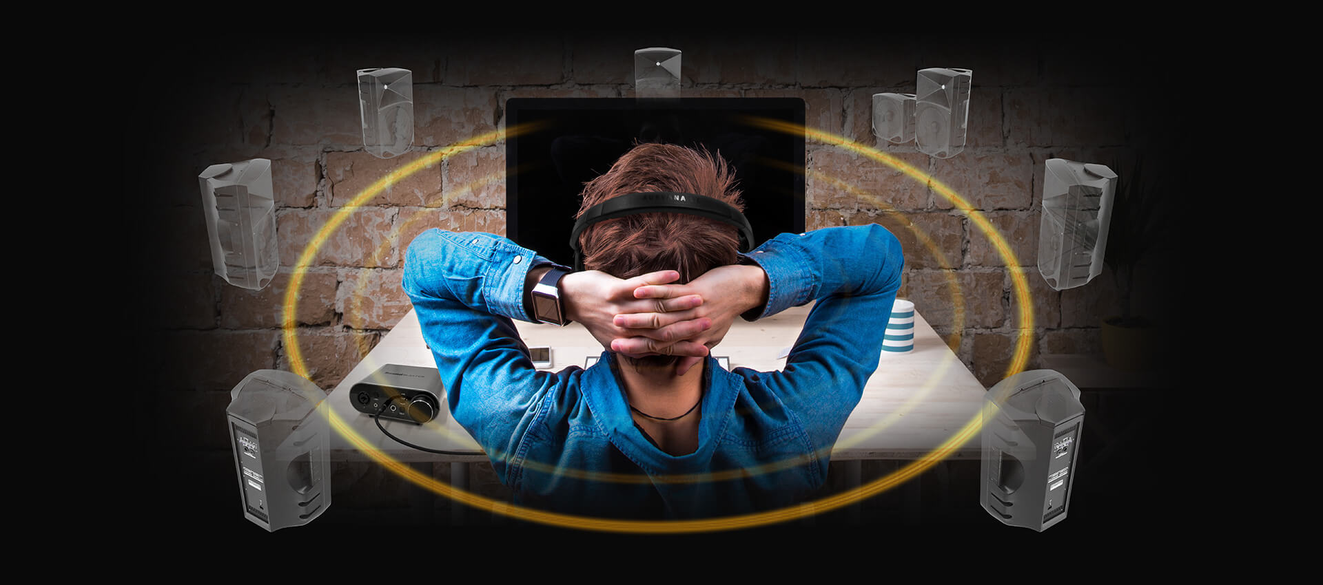让您徜徉在声音的世界里!Sound Blaster AE-9 支持分立 5.1 环绕声道与高达 7.1 的虚拟环绕声道。此声卡还支持 Sound Blaster 的环绕功能,能提供市场上优秀的虚拟环绕声体验。此项功能可完全定制,亦可关闭。