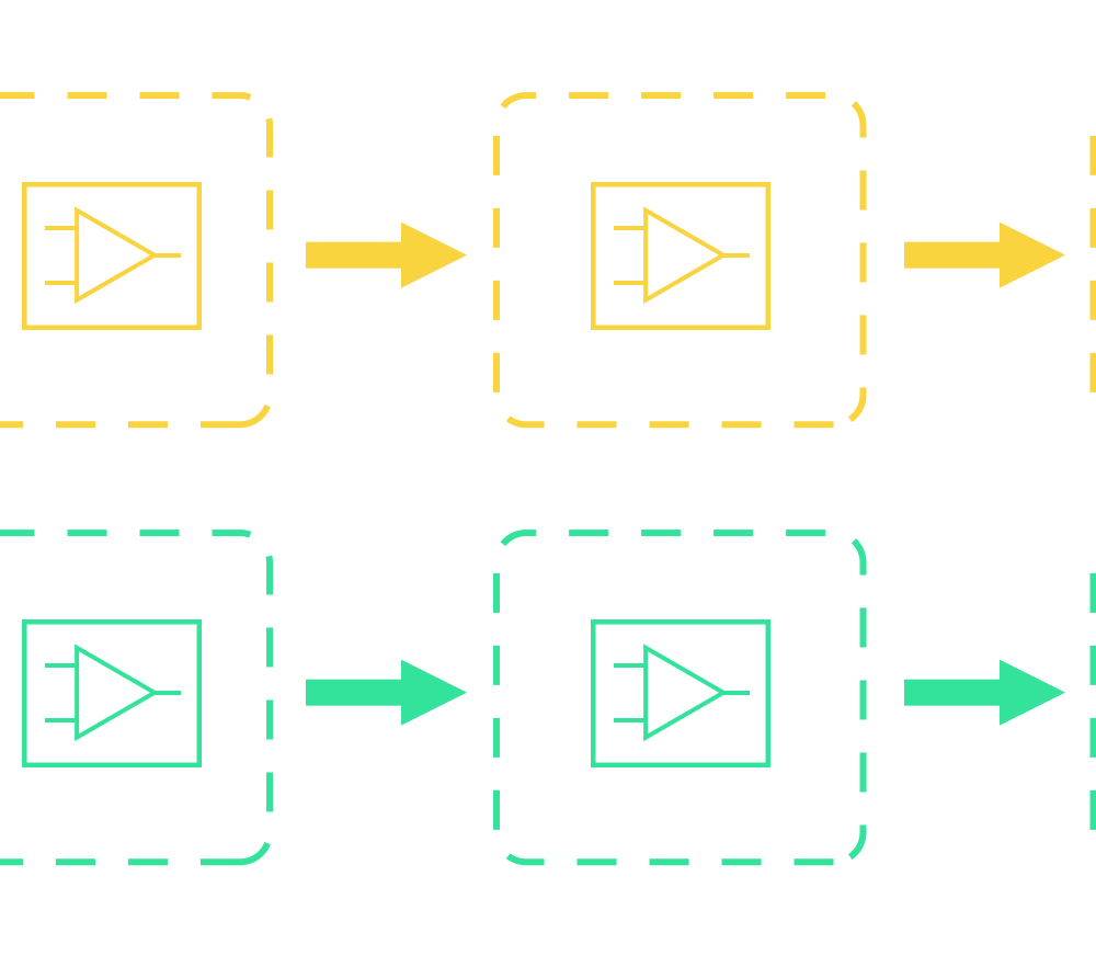 每个音频通道(左和右)都包含3阶段独立放大电路: