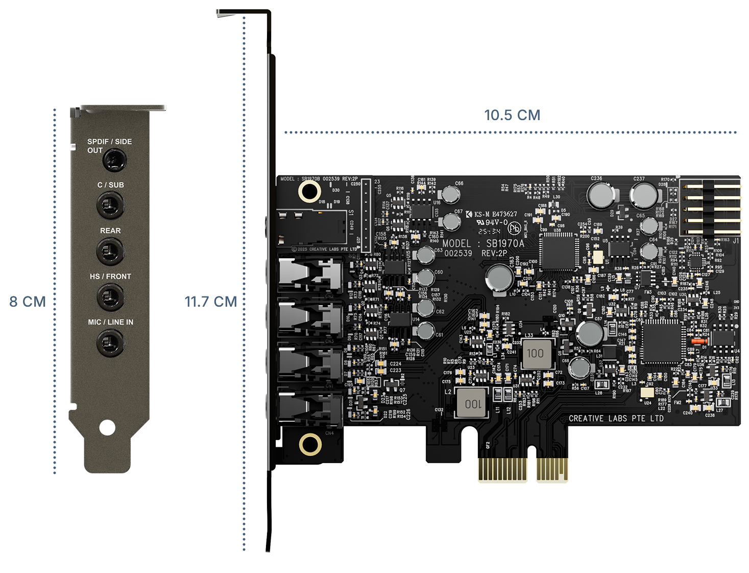 专为紧凑型PC机箱设计,Audigy Fx Pro采用小巧低矮的外形设计,长度仅10.5厘米。随附半高支架,确保兼容小型机箱及满足不同组装需求。