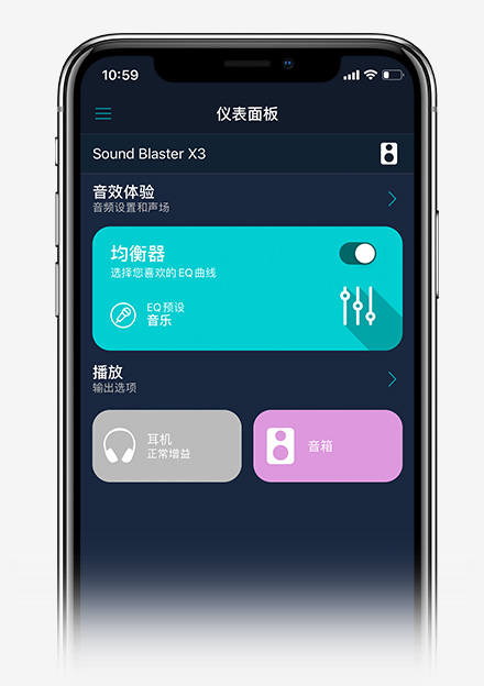 为了进一步提高X3的音频体验,我们还包括了优质的音频处理技术-具备Sound Blaster Acoustic Engine的全套音频增强功能,并通过重新设计的Sound Blaster Command软件提供了此功能。