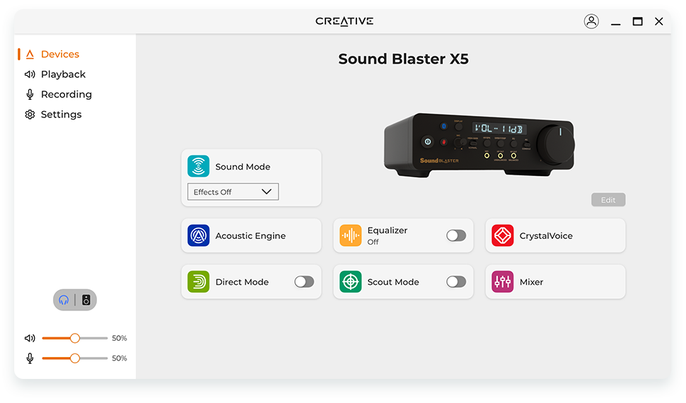 Sound Blaster X5 具有完善的前置按钮和开关,易于使用且直观。