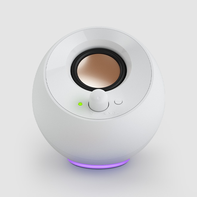 Creative Pebble SE 的高度仅为 116 毫米,可以放置在房间或家中的任何角落,在不占用空间的情况下还能增添美感。它还配有方便快速控制的音量旋钮。