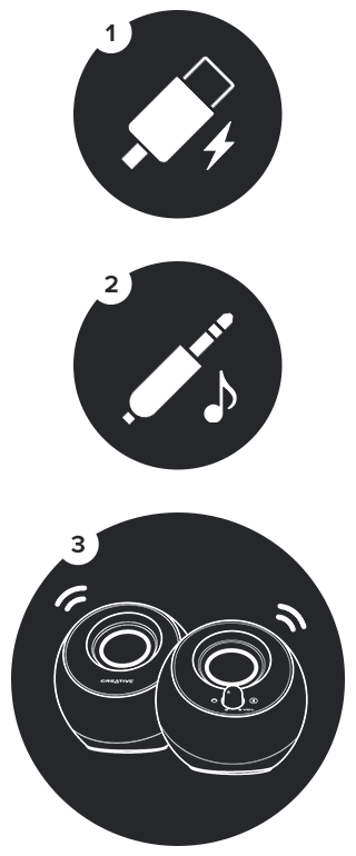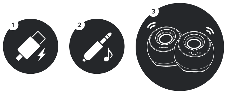 只需将 USB-C 线缆连接至可用的 USB 端口以供电,然后将 AUX 输入线缆连接至音频设备,一切就准备就绪了!