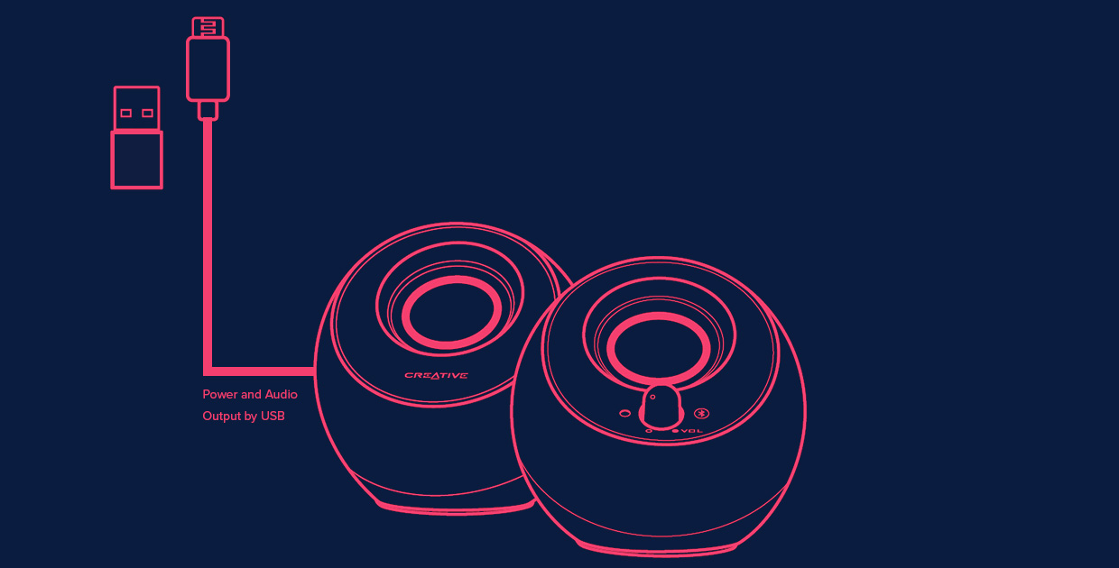 仅通过一根USB-C线缆即可接通电源,播放音频,享受来自Creative Pebble V3的增强USB音频,音频强度提高了一倍,并改善了声学性能! 此2.0音箱还提供了无线连接选项,让您可以通过蓝牙5.0享受来自移动设备的无线传输。