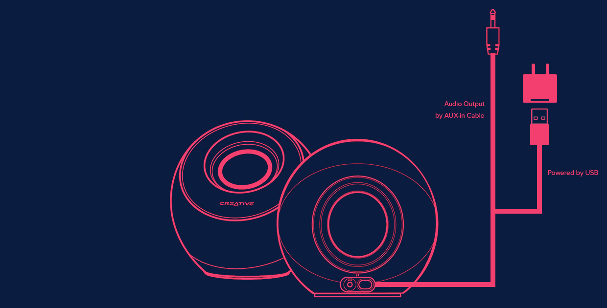 只需一根USB-C线缆即可将Creative Pebble V3连接至笔记本电脑或台式机,同时获得电源和音频,节约桌面空间!