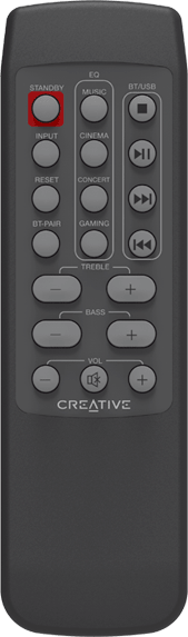 使用随附的遥控器1选择电影,音乐,音乐会或游戏模式的预设EQ选项! 除了通常的音频和音量播放控制之外,遥控器还允许您调节高音和低音设置。