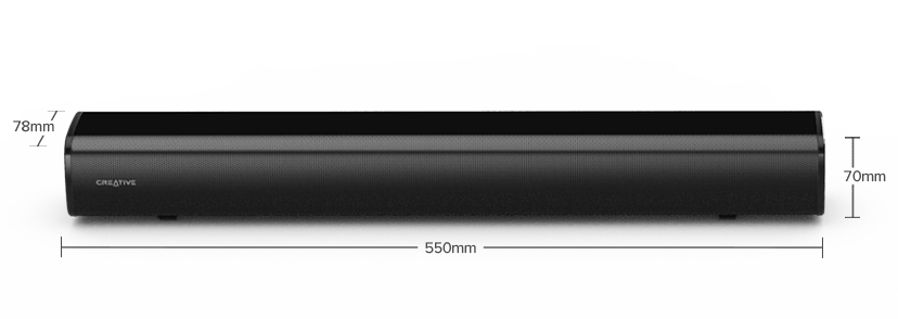 Creative Stage支持各种平台上的多样连接方式,如无线蓝牙,AUX输入,光纤输入,TV(ARC)和USB MP3播放。 简洁的条形音箱外观使其成为任何音频升级的必然选择。