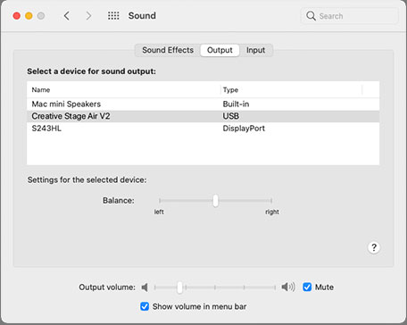 如果您有多个音频设备连接到了您的 PC上,您可能需要在系统的“声音”设置中手动选择 Creative Stage Air V2 作为默认输出设备。