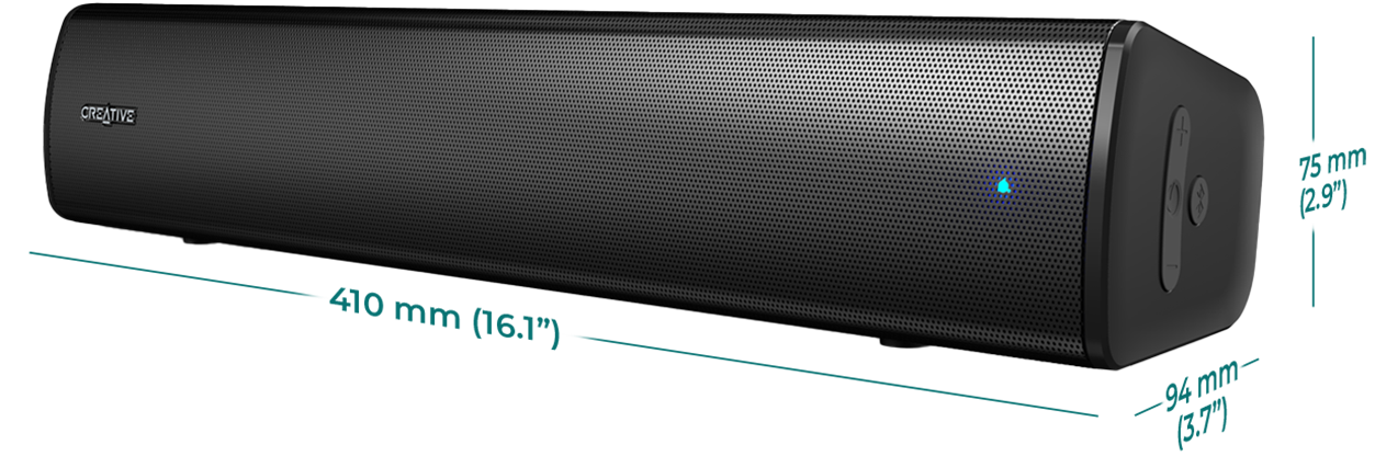 使用 Creative Stage Air V2,您可以轻松地将其放置在任何地方,即使是在桌面上! 条形音箱的尺寸仅为410 x 94 x 75毫米 ,足够紧凑,可以毫不费力地放置在您的显示器下方,最大限度地减少杂乱。