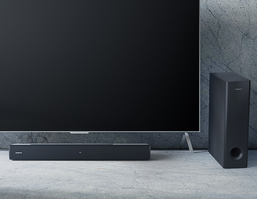 您的4K电视机看起来炫酷又有形,但其声音效果却往往配不上它的外观。想要提升您的观看体验,只需配上Creative Stage V2,即可使您的电视机拥有配得上它的音频。沉浸在电影或游戏中时,Creative Stage V2通过其定制的中音驱动单元和随附的长焦低音炮带来的强劲重低音,为您带来非凡的音质,让您沉浸在电影或游戏中。