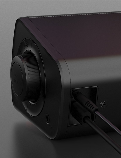 Sound Blaster GS3 配备了强劲的全频赛道驱动单元,并在音箱后部内置了端口管,可提供稳定的音频和出色的低音!