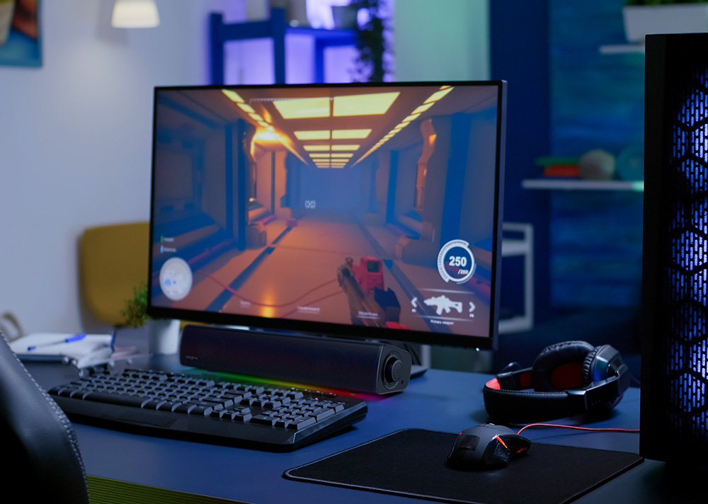 If you don’t have much space on your desk for your gaming setup, the Sound Blaster GS3 offers a compact solution by placing it under your monitor.