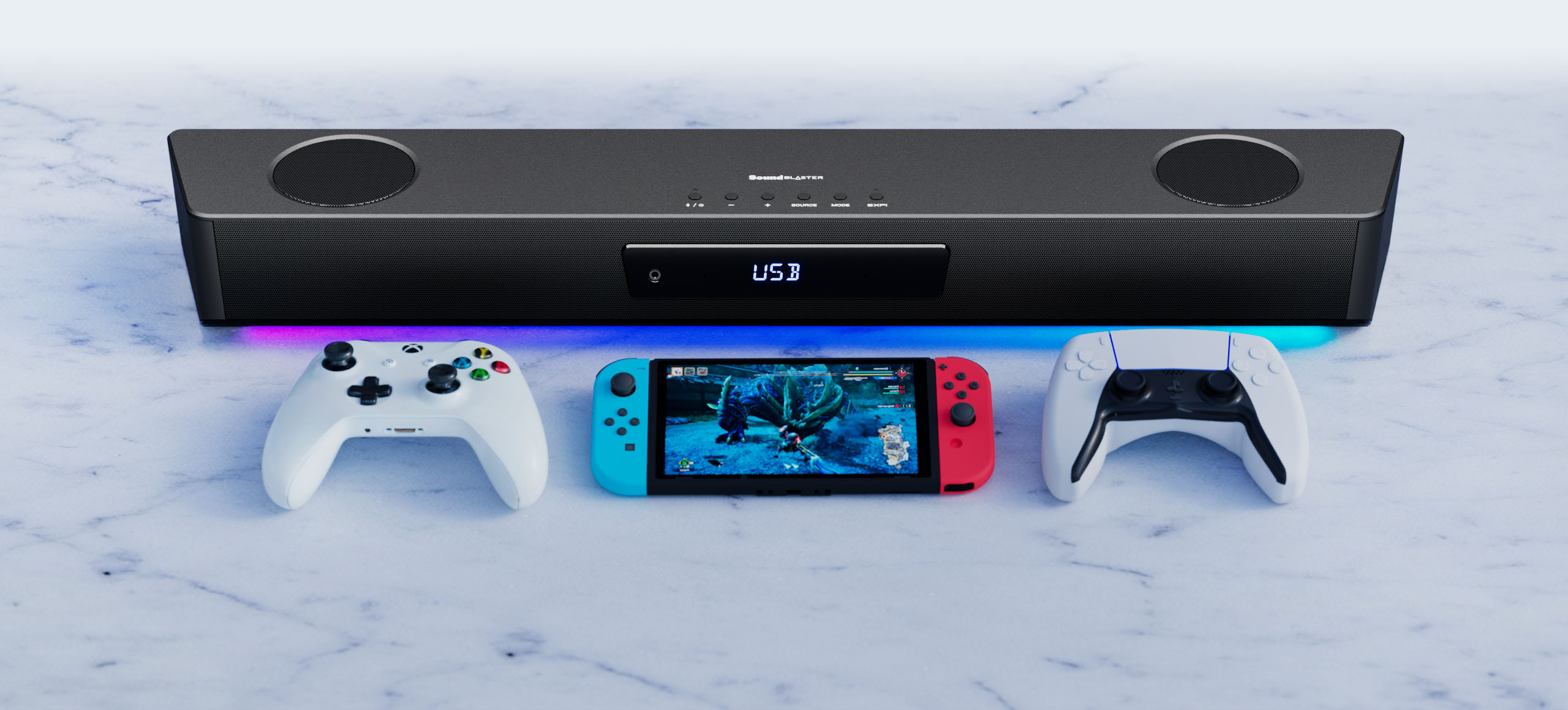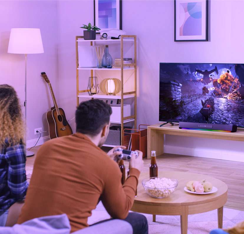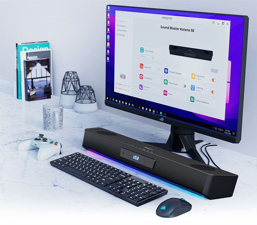 多功能的条形音箱 -从激烈的游戏环节到观看大片,甚至是听音乐放松一下,都可以通过 Sound Blaster Katana SE 在家中享受到身临其境的音频体验。