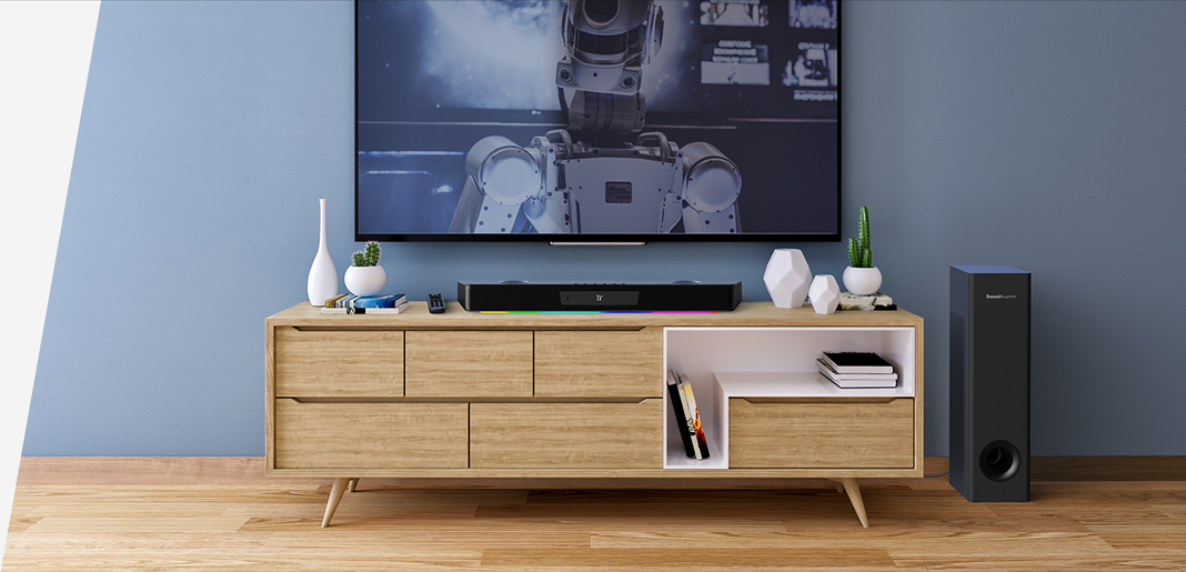 此款条形音箱旨在与您的所有设备无缝协作,确保设置简单、轻松访问声音设置以及与蓝牙设备无缝配对。 Sound Blaster Katana V2X 也可以进行壁挂,因此您也可以将其挂在电视机下方的墙上。