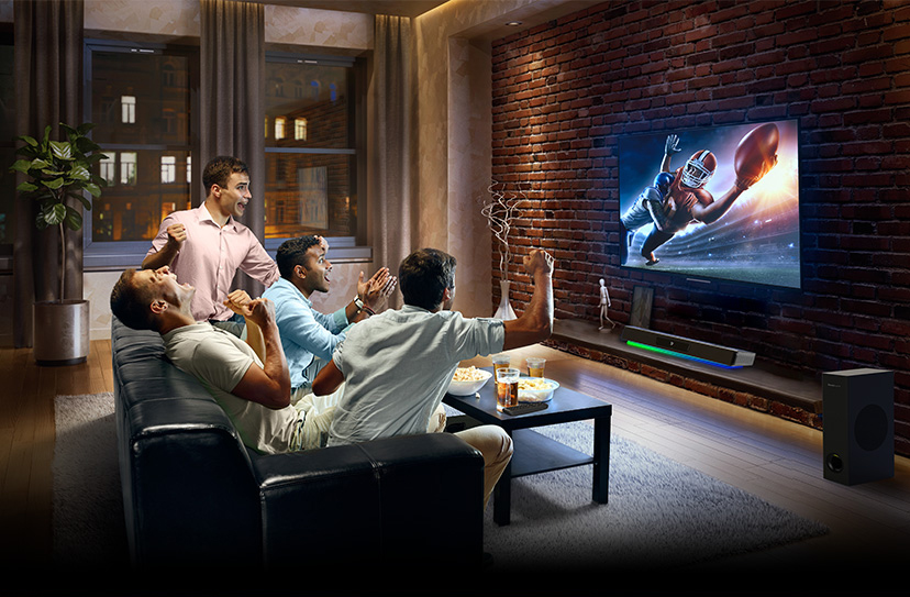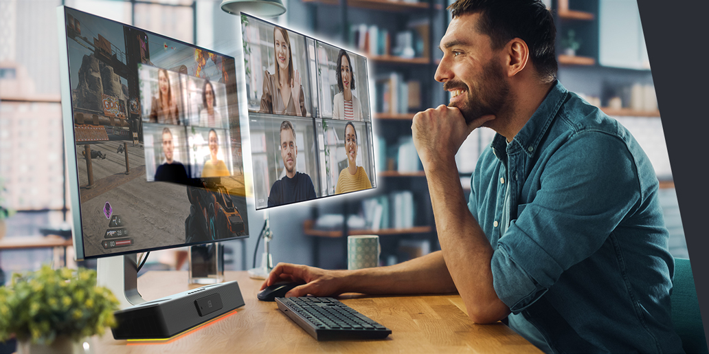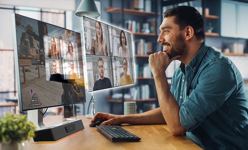 在安静时刻或动作场景中聆听细节,让您大吃一惊!通过我们屡获殊荣的三功放五驱动单元设计,再配上 Super X-Fi® 技术和 5.1 虚拟环绕声体验身临其境的空间音频——所有这些都是为了在家中舒适的游戏体验而精心打造。 通过 USB 音频、便捷的 HDMI ARC、用于无线音频流传输的蓝牙® 5.0 技术、光纤输入、SXFI 输出以及用于模拟音频的 3.5 毫米 AUX 输入,可实现无缝连接协作。条形音箱还配备了双内置波束成形麦克风,如果您想与您的团队快速进入 Discord 上的聊天室,甚至参加在线会议,都可通过它实现。