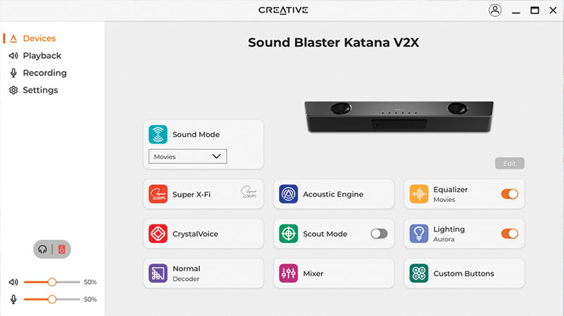 Sound Blaster Katana V2X 旨在成为您的日常游戏伴侣,具有我们广受赞誉的游戏声音模式 - SXFI 对战模式和 Scout Mode* - 通过改进的环绕沉浸感和集成的耳机游戏功能增强音频系统。