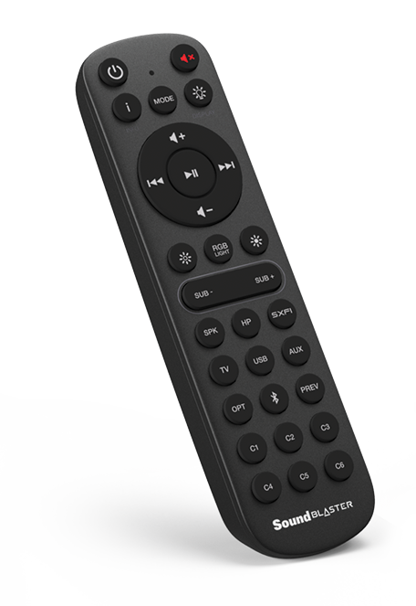 直接在遥控器上访问所有重要设置。 除了基本的音频控制之外,您还可以更改音频源、切换 RGB 灯光预设或访问保存在六个可自定义按钮之一上的自定义功能!