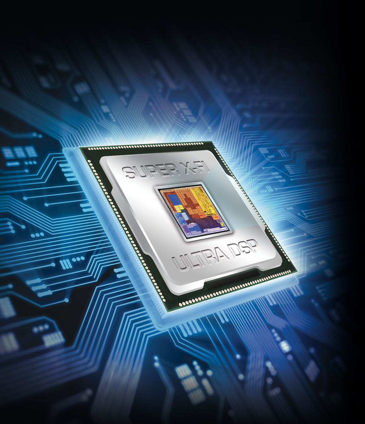 SXFI UltraDSP 是专为《声晰飞》开发的声效信号处理器 UltraDSP 芯片的第一版本。它具有创新科技目前强大的 Sound Blaster 芯片5倍以上的计算功能,而功耗却还不到一半。这款高度集成的“片上系统”(System-on-Chip)芯片,内部全部运用32位运算处理,除了集合了一般系统所需的配件,它还包括一个大缓存的快速存储器,并可同时解码和处理多达8个通道的高 解析度 24位 96 kHz 音频。它还内置了一对高保真音质的 DAC 和 ADC。